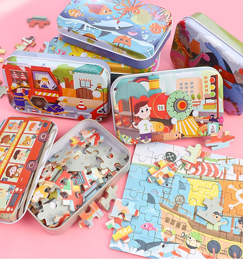 60 шт. деревянный пазл, игрушки для детей, детские настольные игры, креативная головоломка Монтессори, обучающая игрушка в виде животных, рождественский подарок