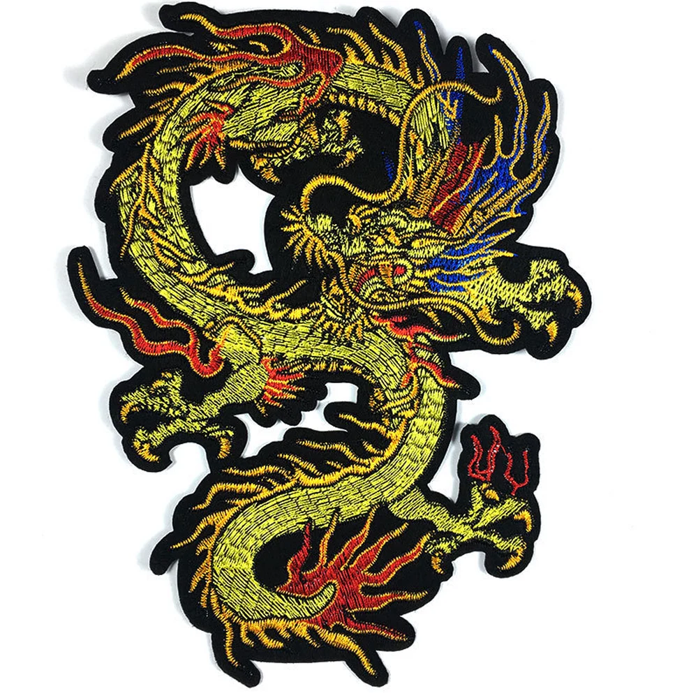 Китайские нашивки дракона для одежды, сшитые на байкерском мотоцикле, вышитые значки черепа в стиле панк, большое черное пальто из змеиной кожи, аксессуар