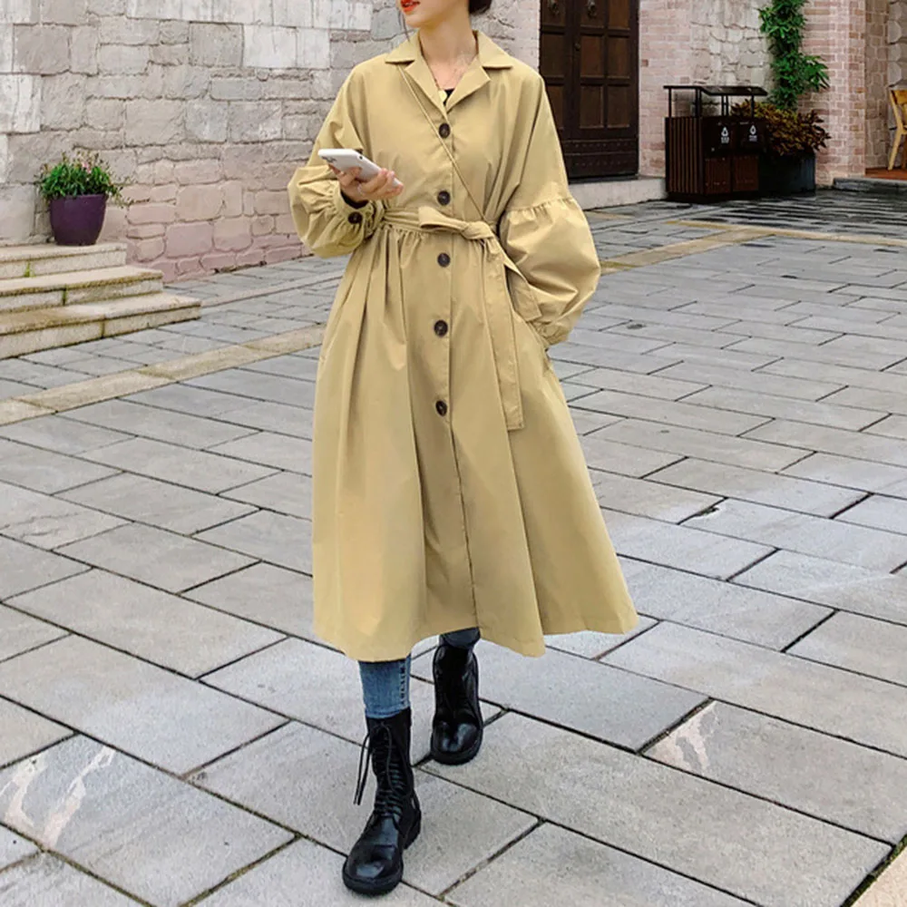 Korean Version Spring and Autumn Female New Long Sleeve Trench Coat Double Breasted Slim -Fit Mid-Length Manteau Femme Traf Jas | Женская
