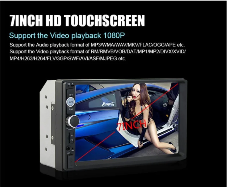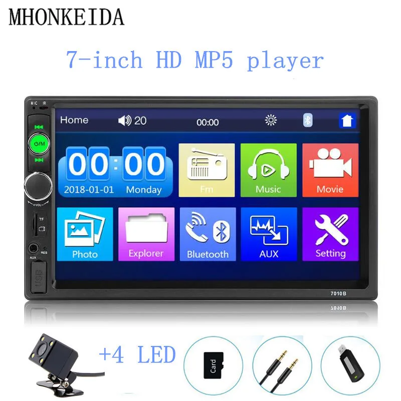Автомобильный Радио HD 7 "сенсорный экран стерео Bluetooth 12 В 2 Din FM ISO мощность Aux вход Авто MP5 плеер SD USB