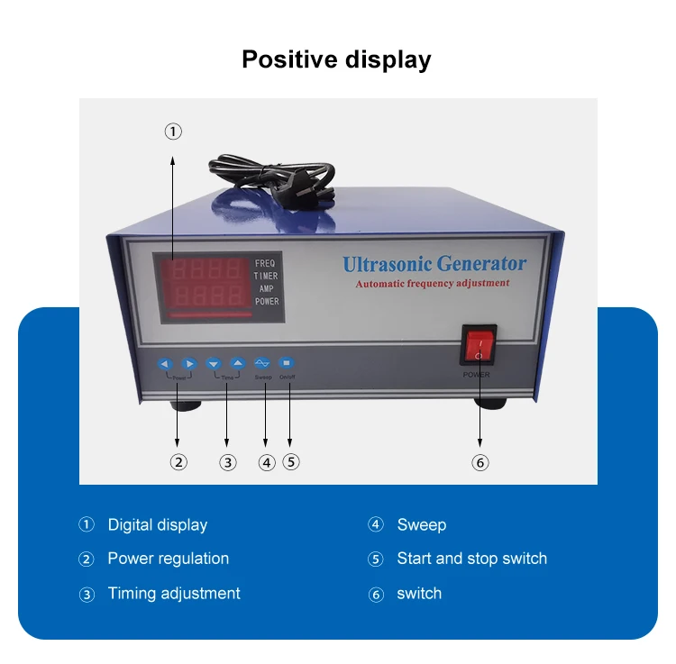 Ультразвуковой генератор-это устройство, используемое для генерирования и обеспечения ультразвуковой энергии для ультразвукового преобразователя. Его цель заключается в преобразовании нашей сети (220 В или 380 В, 50 Гц или 60 Гц) в высокочастотный сигнал переменного тока, который может соответствовать ультразвуковому преобразователю. Этот сигнал может быть синусоидальным или импульсным сигналом.