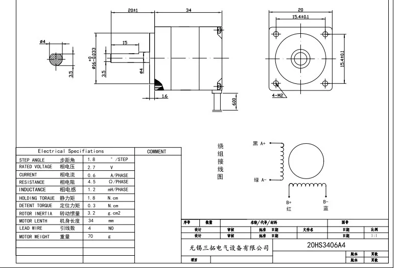 Спецификация шагового двигателя:(28HS3406A4)