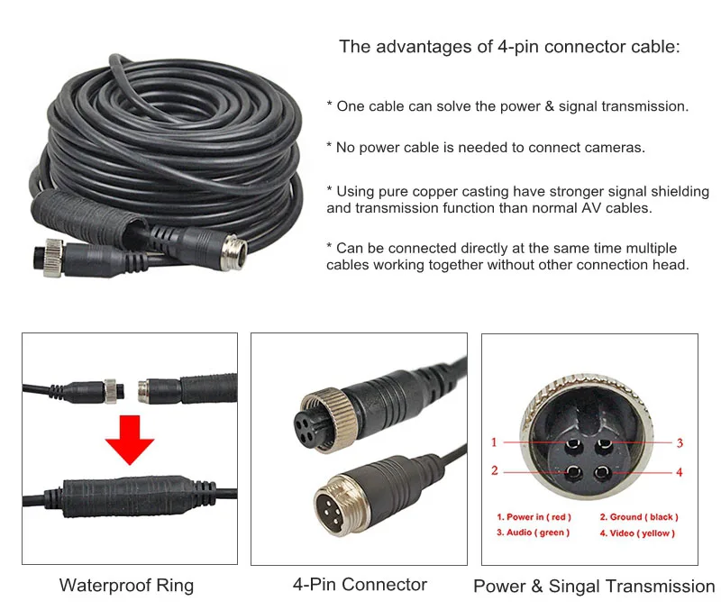 До четырех камер могут быть подключены к сигналу, широко используются в различных транспортных средствах. Подходит для холодного напряжения, сильной защиты от помех, встроенной защиты от теплового тока.