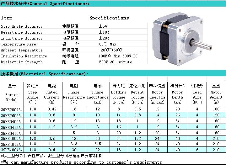 Спецификация шагового двигателя nema 16 (модель: 39HS2004A4):