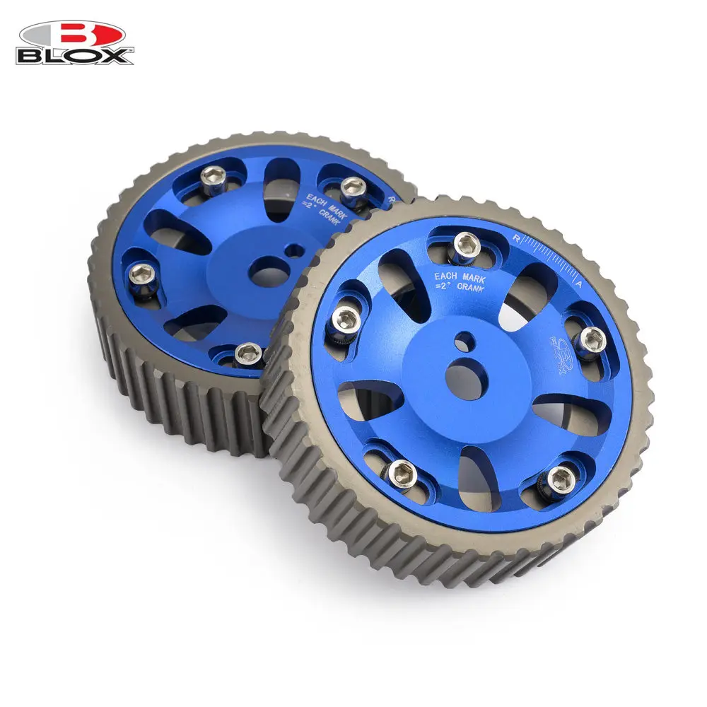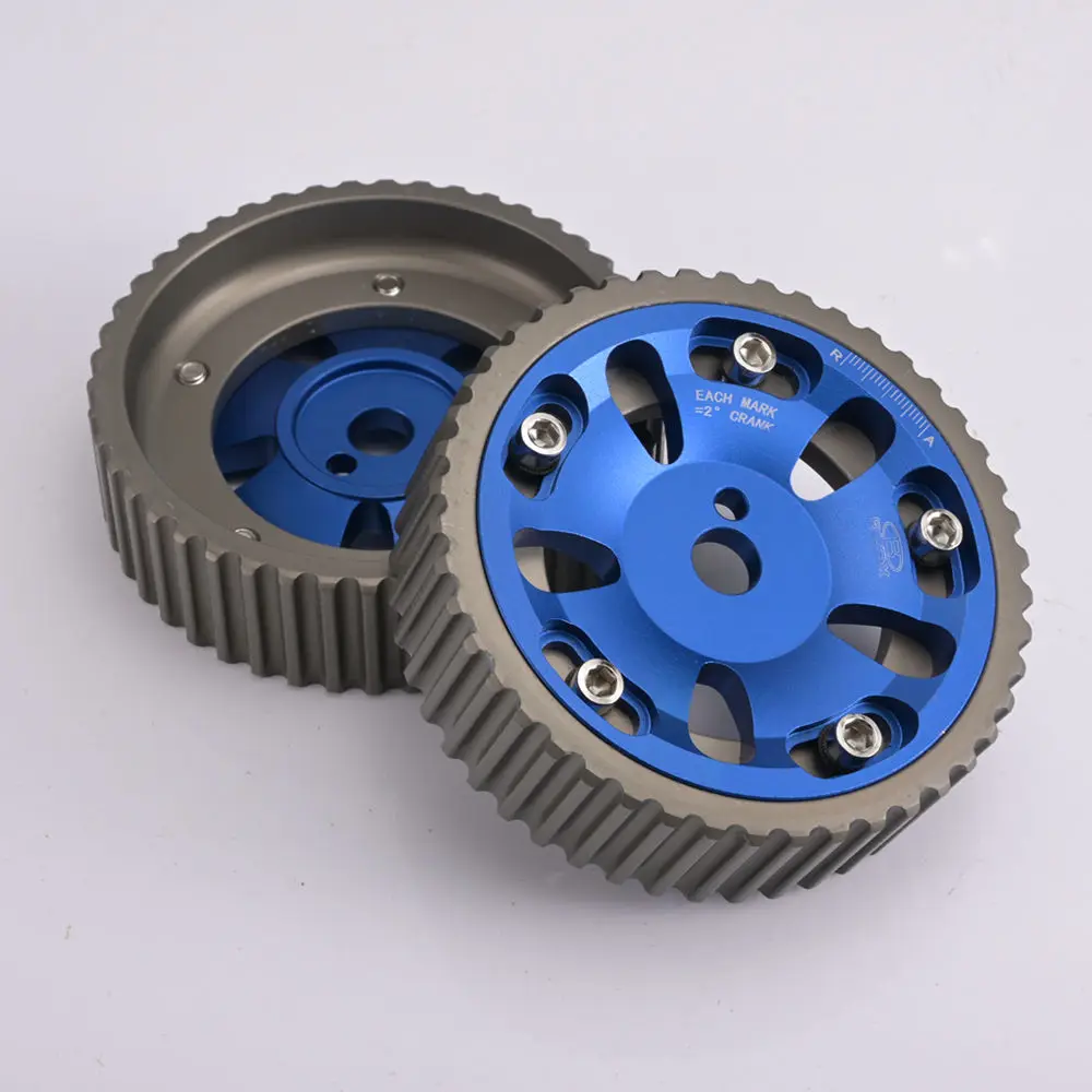 Кулачковые шестерни серии Pro имеют очень легкий дизайн и обработаны ЧПУ Из Алюминиевого Сплава 7075-T6. Каждая Шестерня имеет лазерной гравировкой метки ГРМ с +/-10 cam градусов и проверенные 6-болт дизайн. Внешняя шестерня жесткая анодированная для долговечности, а Центральный концентратор из титана анодирован для этого гоночного вида. Pro-series cam gears на 5 ‰ легче, чем наши и без того ультра-легкие Тюнер серии cam gears.