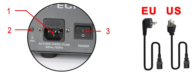 1) Мощность питания: переменный ток 110V-240V 50/60Hz