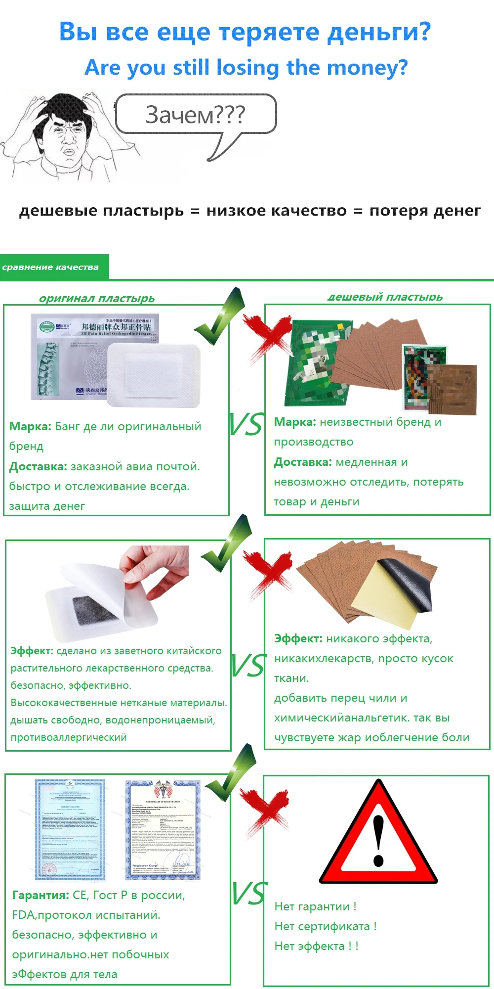УпаковкаВключают: 60 шт. патчи ZB ортопедический, облегчающий боль пластырь Дата изготовления: 2019-2021 Срок годности: 2 года Название продукта:ZB ортопедический, облегчающий боль штукатурка Основные ингредиенты: Китайский Экстракт растений. Нет побочных эффектов для тела. Индикация: Артрит, ревматический артрит, плечо/спина/суставы/мышцы/облегчение боли в колене. Применение: 1. Вымойте поврежденную область и протрите ее сухой. 2. приклейте пластырь на месте боли. Один пластырь может храниться в течение 2-3 дней. 3. перед использованием следующего гипса должно быть 3-5 часов. Внимание: Актуальное использование, не используйте на открытых ранах или аллергической коже.