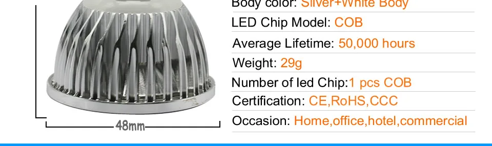 Этот светодиодный прожектор COB отличается ультра ярким и модным дизайном. Он может идеально заменить галогенный прожектор G5.3 или GU10. Сэкономьте много денег за электричество. Настоящий зеленый и высокое качество, длительный срок службы до 50000 продукта!