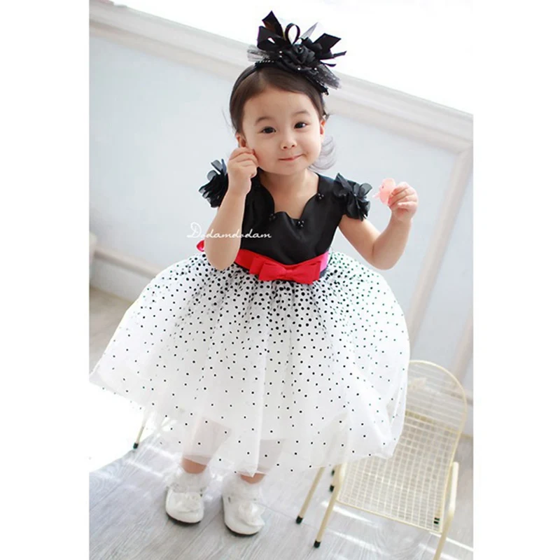 Polka Dots Lace Baby Girl Dress with Red Bowtie Belt Toddler Girls Summer Dress Jurken Kids Clothes Children Clothing 3-5 Years