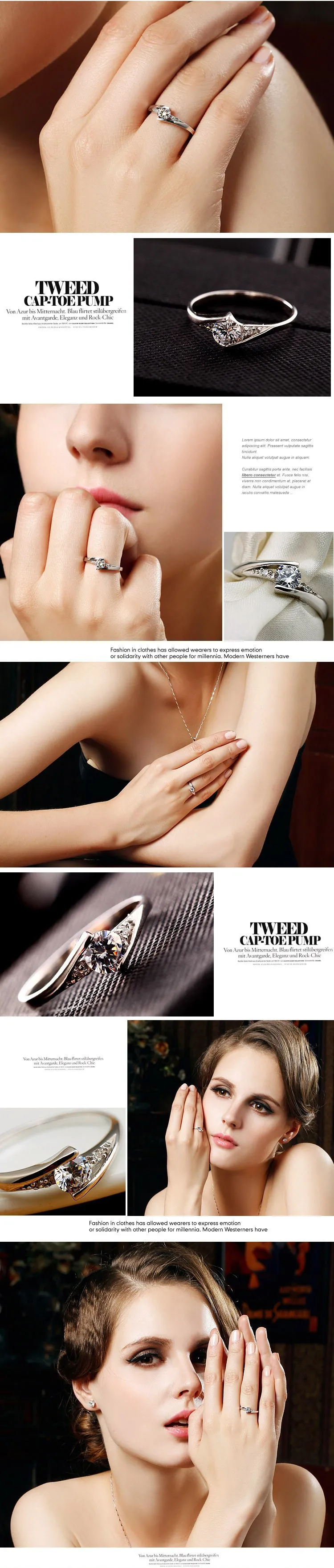 Женское серебряное обручальное кольцо, ювелирное изделие с кристаллом из кубического циркония, ювелирное изделие цвета розового золота, Скидка 40%, J045