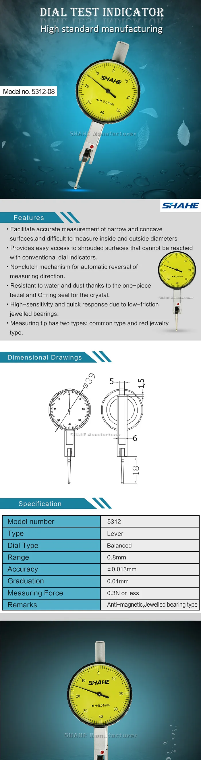 ★Характеристика 1. Облегчают точное измерение узких и вогнутых поверхностей, и трудно измерить внутренний и наружный диаметры 2. Использование специального устройства для достижения автоматического поворота измерительного направления 3. Измерительный рычаг Соединительный конец встроен в прецизионные шариковые подшипники