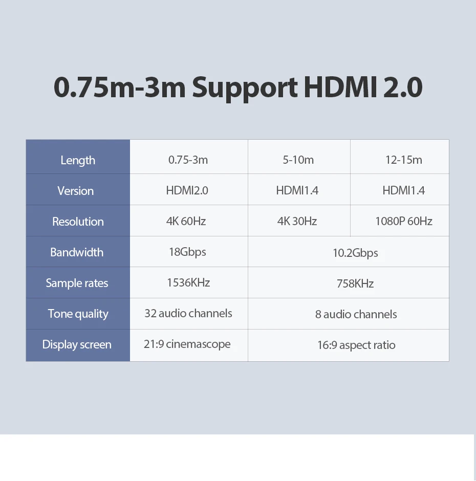 ⭐Четыре типа продуктов - это кабель HDMI 2.0. Из-за различных материалов и длины максимальное поддерживаемое разрешение отличается.