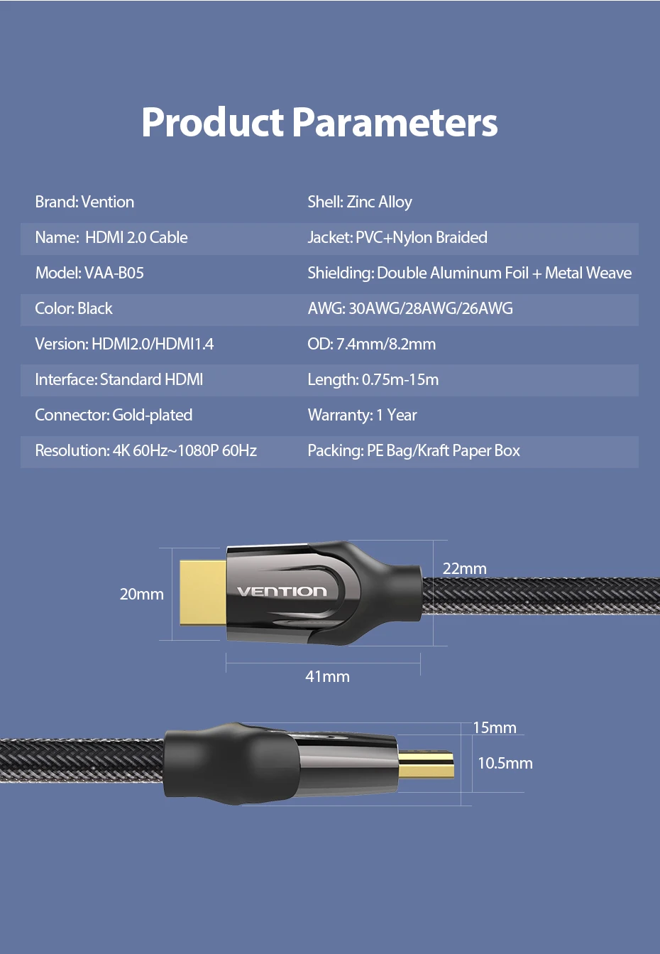 1 м / 1,5 м / 2 м / 3 м поддерживает до 4K60 Гц.