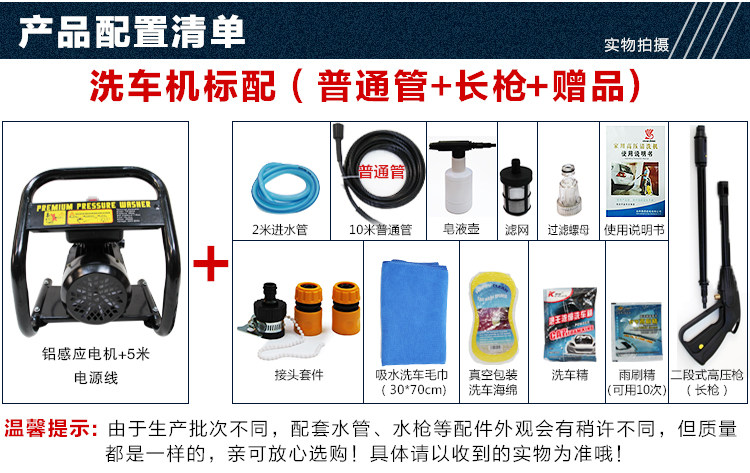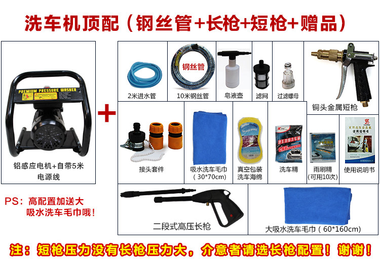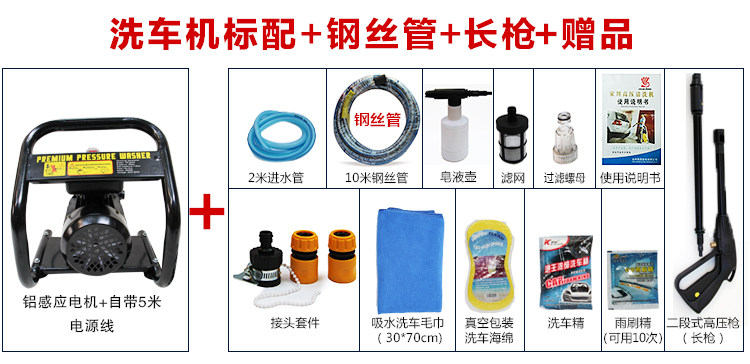 Стиральная машина поставляется с 10 м высокого давления из ПВХ + подарок (558 юаней): включает в себя (асинхронного двигателя) хост поставляется с 5 m шнур питания в воду + 1,5 м + 10 м + экран + двухступенчатый высокого давления трубы пистолеты (винтовки) + пена + иглы + (Труб, связанных с набор универсальных шарниров 4 + Руководство пользователя)