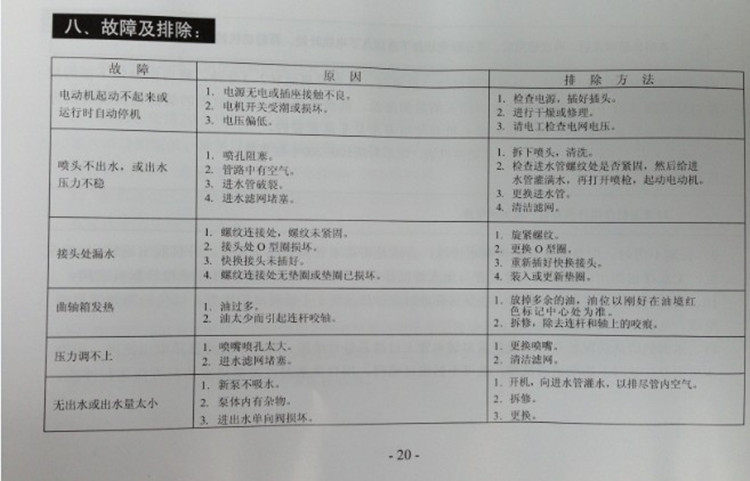 Линия водоснабжения заблокирована Воздух в насосе Односторонний клапан выходит из строя или попадание посторонних веществ Давление регулирующий клапан неисправности или посторонних веществ входит в Сопло отказ Отказ уплотнения | Проверьте всасывающий трубопровод Проверьте всасывающий трубопровод Стирка или заменить Стирка или заменить Для замены Для замены |