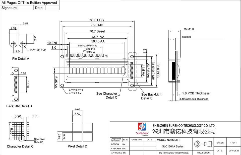 Model номер модели: SLC1601A Type тип продукта: персональный ЖК-модуль ➤ Торговая марка: Surenoo Format Формат дисплея: 16*01 символов ➤ Интерфейс: 6800 4 параллельный, 6800 8-битный параллельный IC или эквивалент: AIP31066, HD44780, KS0066, SPLC780D Font Шрифт: английский/японский | |