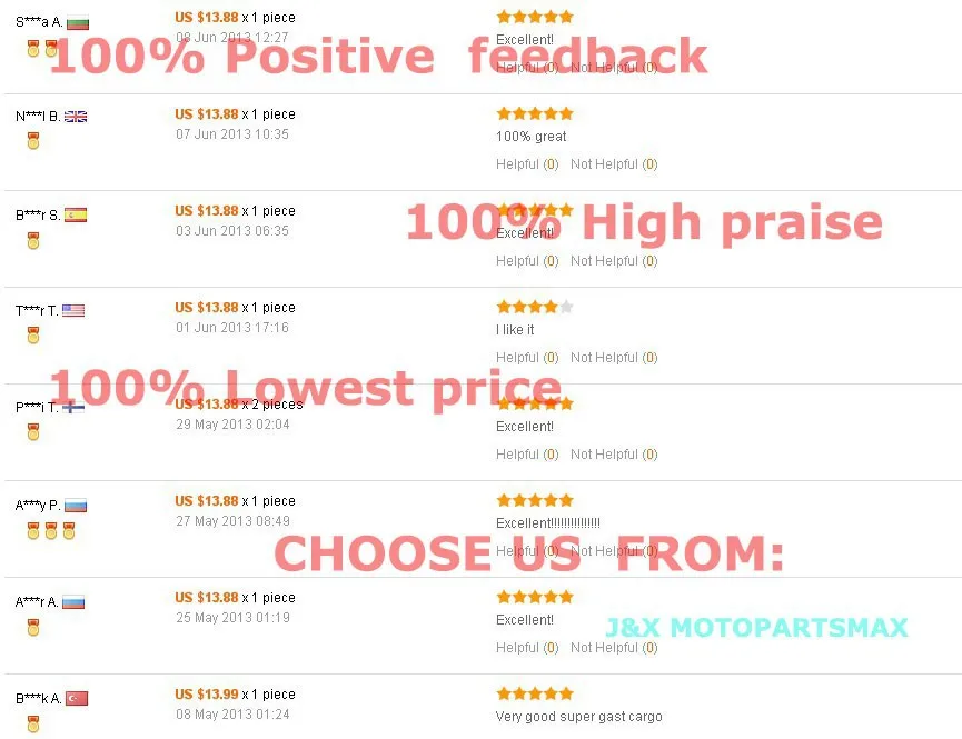 1) мы будем высоко оценены, если вы дадите нам положительные отзывы после получения товаров.