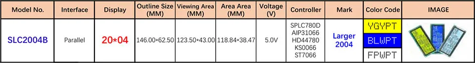 Model номер модели: SLC2.004B Type тип продукта: персональный ЖК-модуль ➤ Торговая марка: Surenoo Format Формат дисплея: 20*04 символов ➤ Интерфейс: 6800 4 параллельный, 6800 8-битный параллельный IC или эквивалент: AIP31066, HD44780, KS0066, SPLC780D Font Шрифт: английский/японский ➤ План измерения:146,00 (W)x62.50(H)x13.50(T) мм ➤ Визуальный площадь:123,50X43.00мм ➤ Активная область:118.84x38.47 мм Direction направление обзора: 6:00 ➤ IC посылка: COB Power Источник питания (тип): 5,0 в | |
