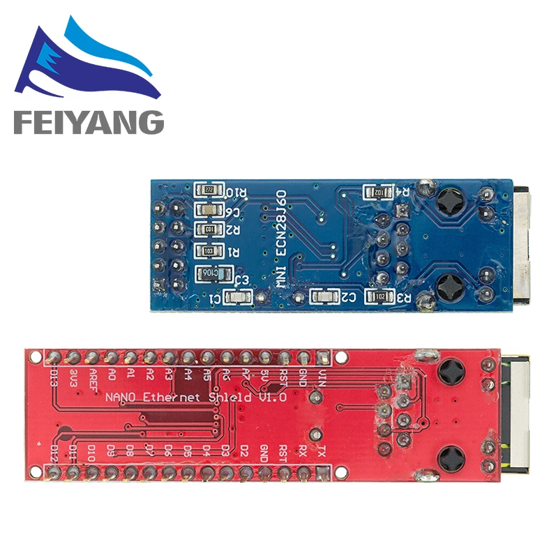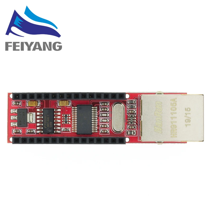 1, бортовой ENC28J60/SS чип 2, плата 25 МГц кристалл 3, встроенный HR911105A сетевой interface4, 3,3 V Pin-powered 5, размер PCB: 48,8 (мм) x18.5 (мм)