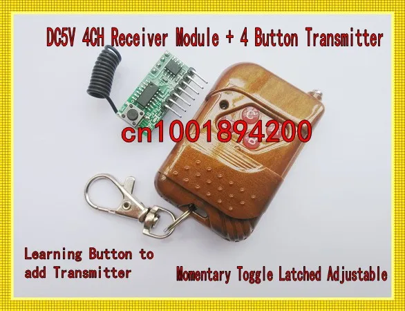 ![]() DC5V 4CH плата модуля приемника + 4 кнопки передатчик обучающий код мгновенное переключение блокированный регулируемый приемник. Маленький мини размерUS $10,00/Комплект |
