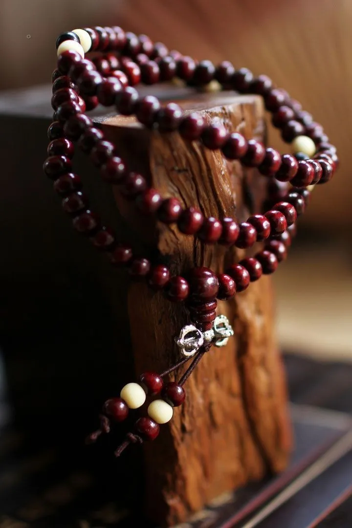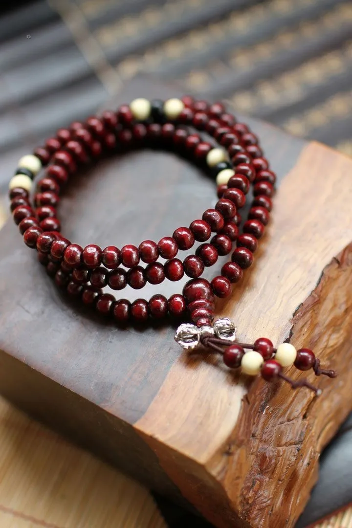 Параметры: диаметр шарика 0,6 см, красными бусинами, в общей сложности 108, Черный и белый цвета бусины для натуральный корень дерева Бодхи