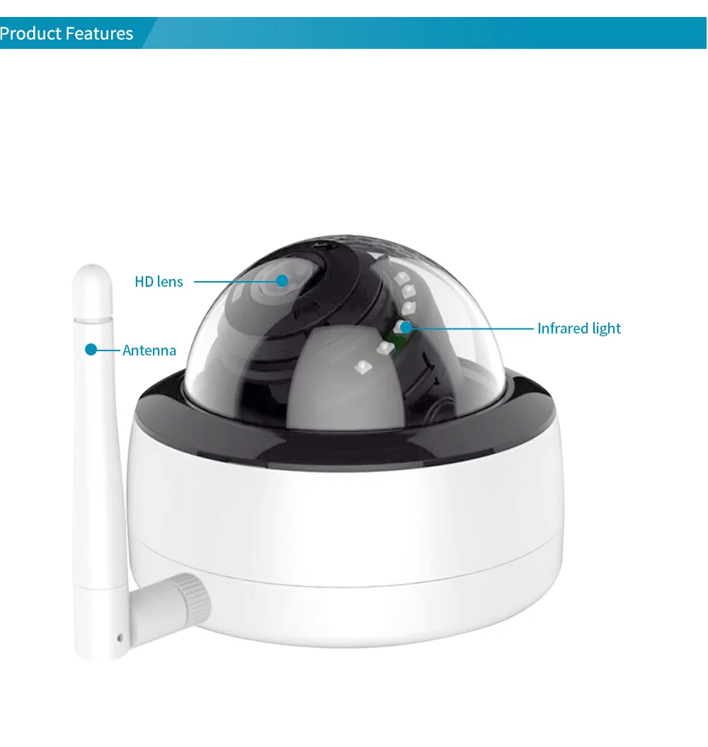 Высокое разрешение 2.0MP / 5.0MP HD IR Внутренняя/наружная водонепроницаемая камера, низкое освещение Поддержка IE, браузера Google Поддержка Iphone, смартфонов Android Поддержка мобильных телефонов и удаленного просмотра компьютера Обнаружение движения P2P, потеря видео, перерыв сети Беспроводные протоколы: 802.11b/g/n, 150 Мбит/с, 10-50 м Металлический корпус высокого качества P2P приложение: CamHi Важное примечание: 1. Источник питания в комплект не входит, SD-карта в комплект не входит 2. Для установки Micro SD-карты необходимо открыть камеру, установить слот для SD-карты на задней части платы камеры, Если у вас возникли проблемы с инструкцией, свяжитесь с нами. 3. Эта камера поддерживает интерфейс веб-сайта, например IE ,Chrome 4. Время записи зависит от SD-карты, которую вы устанавливаете. Информация по времени записи представлена ниже для справки: 32 Гб: 7-8 дней; 64 Гб: 14-16 дней Упаковочный лист: 1 беспроводная IP-камера с Wi-Fi (блок питания и SD-карта в комплект не входят) 1 винт Примечание: Наша IP-камера с Wi-Fi не включает адаптер питания, Если вам это нужно, пожалуйста, нажмите на фото, как показано ниже, добавьте его в свой список заказов, спасибо!
