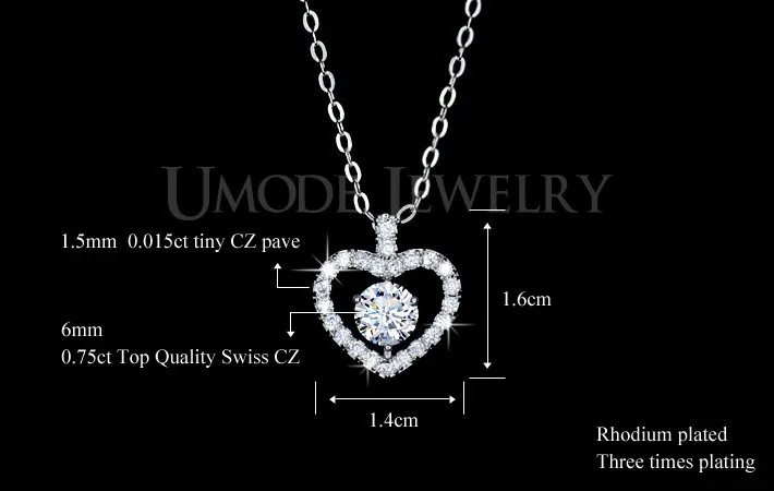 UMODE брендовый ДИЗАЙН Романтическая форма сердца 0.75ct CZ кулон ожерелье (Umode UN0046)