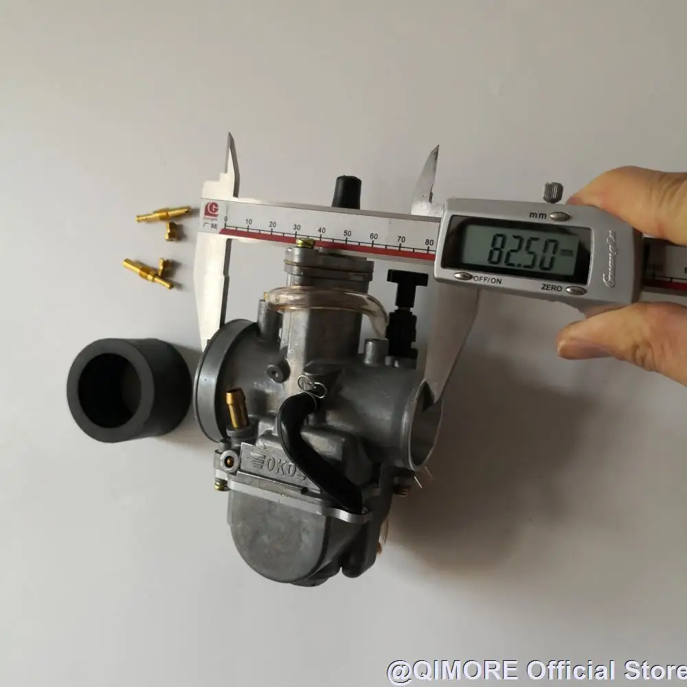 Внутренний диаметр впускного коллектора: 30,3 мм Наружный диаметр впускного коллектора: прибл. 35 мм Внешний диаметр воздушного фильтра: прибл. 50 мм Размер основной струи на карбюраторе: 120 # Размер двигателя без двигателя на карбюраторе: 38 # Размер двух запасных струй: 115 # / 39 # и 125 # / 41 #