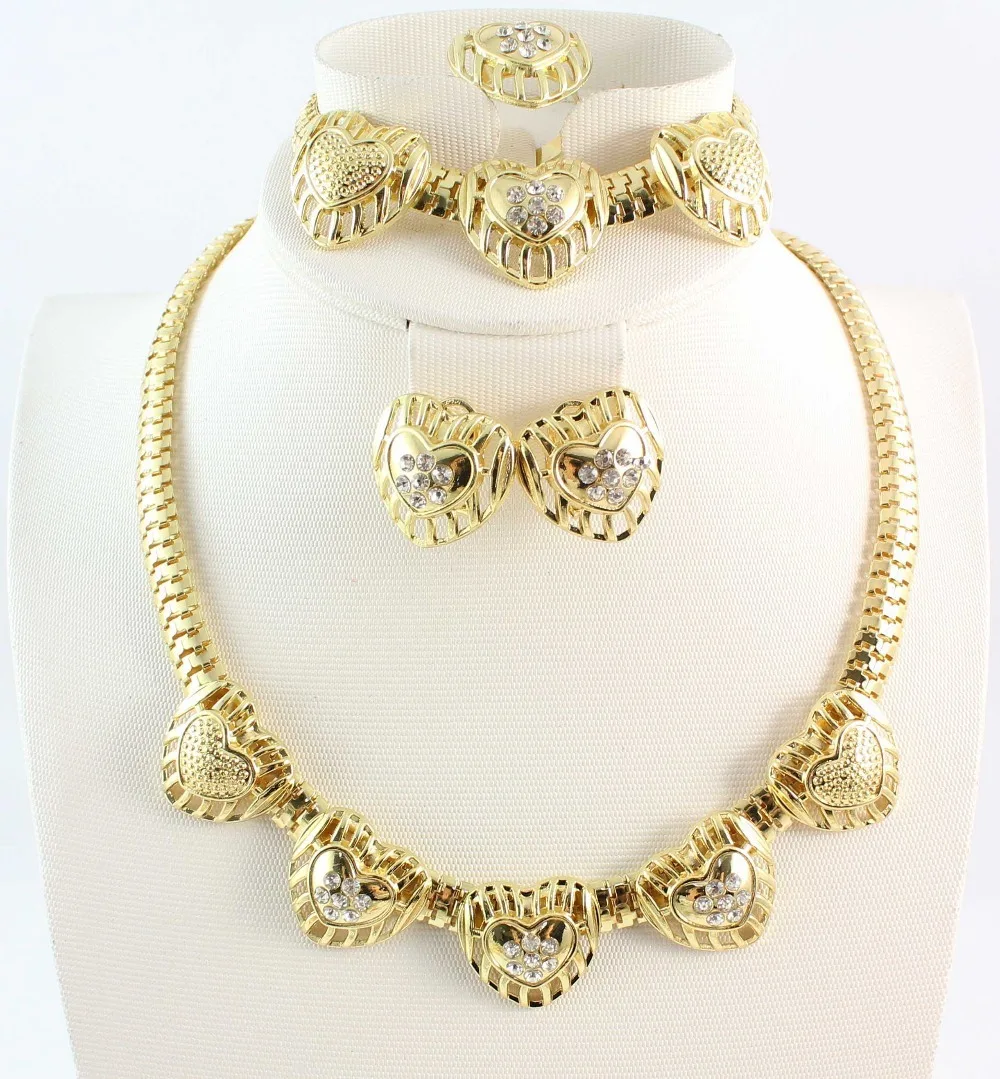 Бесплатная доставка, Модный комплект, позолоченные винтажные прозрачные стразы, ожерелье, набор из 4 предметов, высокое качество, набор золотых украшений на платформе для женщинUS $28,89/Комплект |
