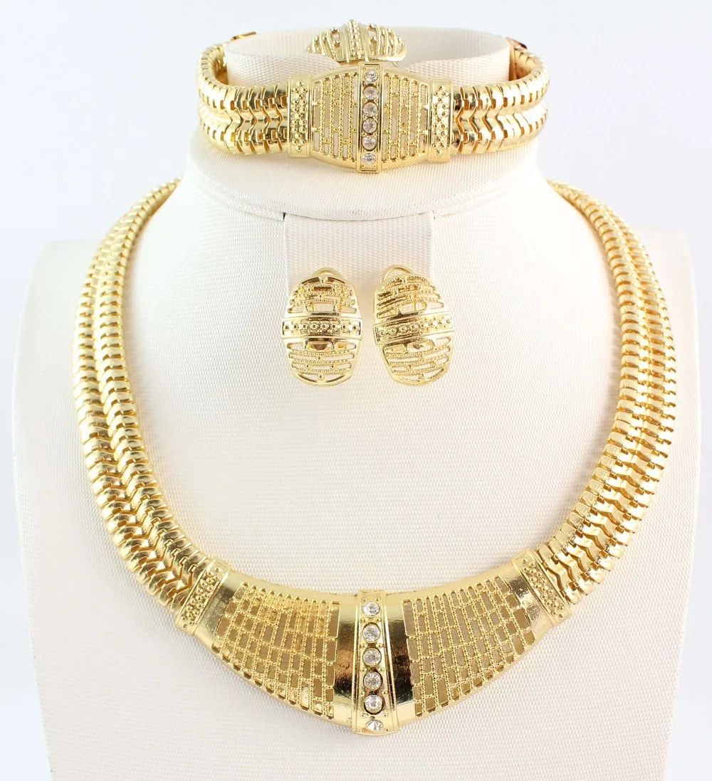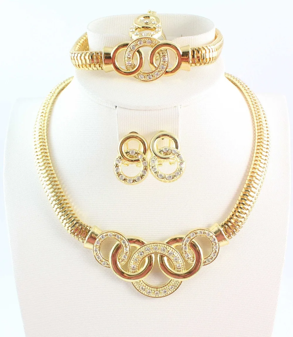 Бесплатная доставка 18k позолоченные массивные модные ювелирные изделия, комплект ювелирных изделий в африканском стиле ожерелье Мода для женщинUS $26,89/Комплект |