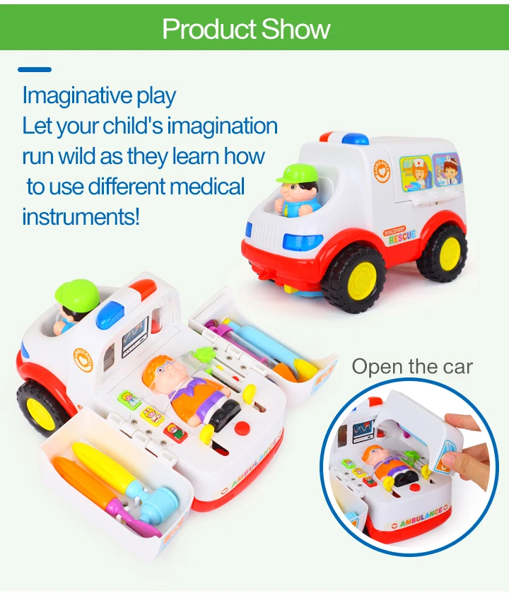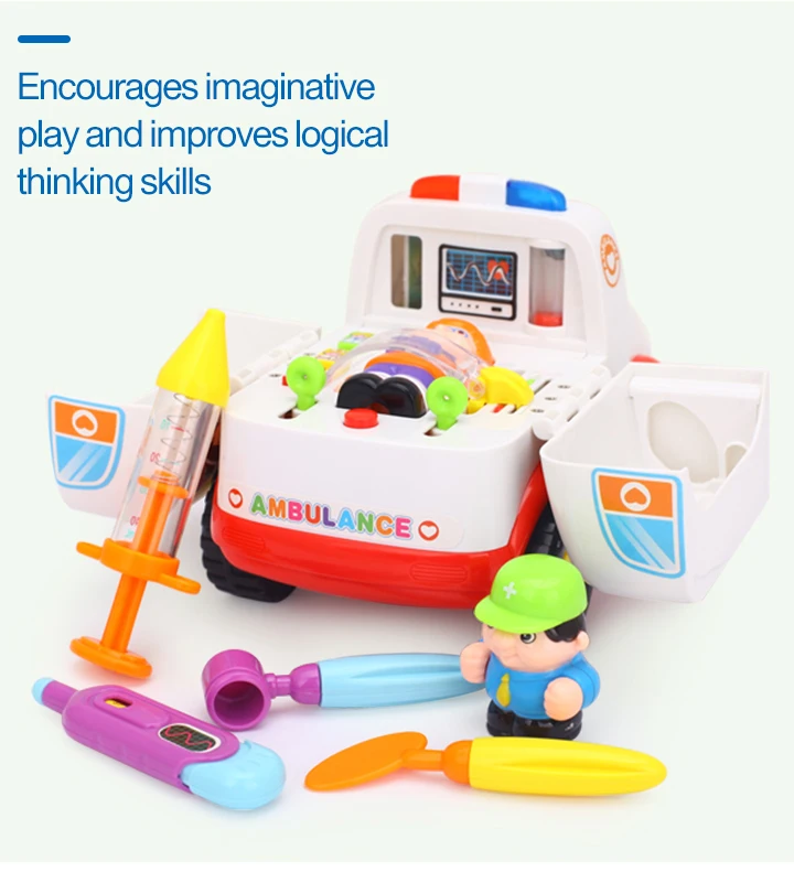 HOLA 836 автомобиль скорой помощи игрушка с музыкой и огнями для маленьких детей ясельного возраста 13-24 месяца 2-в-1 притворяться доктор набор игрушек комплект для мальчиков