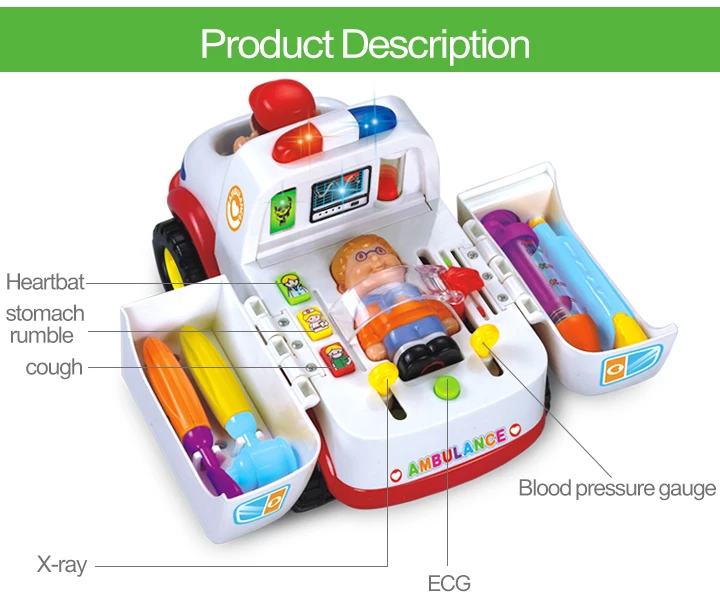 Параметры: ❤【Различный игрушка «машина скорой помощи» 】 Откройте автомобильную коляску, в том числе: шприц, скальпель, отоскоп, термометр и paitent лежа на автомобиле. Он учит детей Узнать функции и использование всех медицинских инструментов и медицинских познаний ❤【 По шкале Мооса Car】 Автомобиль скорой помощи для детей 2, 3, 4, 5, 6, 7 лет, автомобиль скорой помощи будет меняться направления и работать, когда он ударяется в что-то ❤【Мигающий свет и музыкальнаяstart Запуск скорой помощи, и это сделает: "Beehh" начать звук ❤【Medical аварийно-спасательных Knowledge】 Нажмите на кнопку, чтобы ребенок мог слушать кашель, сердцебиение, медицинские звуки, сделайте рентгеновский снимок и электрокардиограмма отправит ❤【Toddler игрушки 】 19*11,5*13 см. Лучший подарок для мальчиков и девочек старше 36 месяцев. Запросы батареи: 3*1,5 V * AA батареи (не включены)