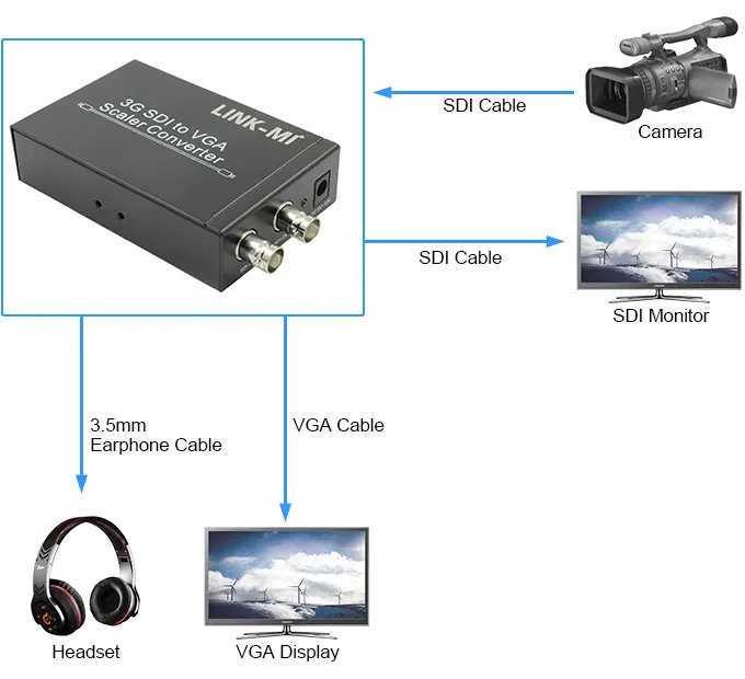 LINK-MI конвертер HD-SDI/SD-SDI/3G-SDI в VGA позволяет SD-SDI, HD-SDI и3G-SDI сигналы, которые будут отображаться на дисплеях VGA, обеспечивая высокую скорость бит 2,970 Гбит/с, чтобы дать вам быструю передачу сигнала без каких-либо потерь. Для профессионалов это означает, что теперь проще распределить и расширить3GSDI сигнал дает вам возможность отображать вашу работу на VGA дисплеях благодаря встроенному в этот конвертер. Кроме того, благодаря петлю3G-SDI дизайн, пользователи могут наслаждаться как SDI, так и VGA одновременно.