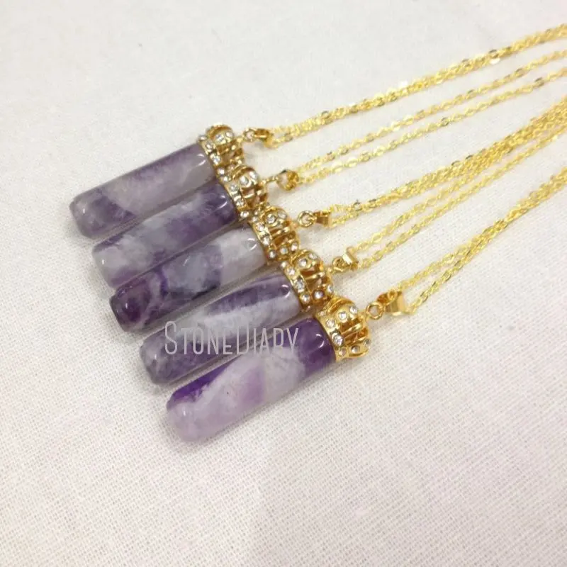 NM12050 Хрустальная корона ожерелье Золотая цепочка целебные кристаллы аметиста цилиндрическая точка круглый подвесной Амулет ожерелье