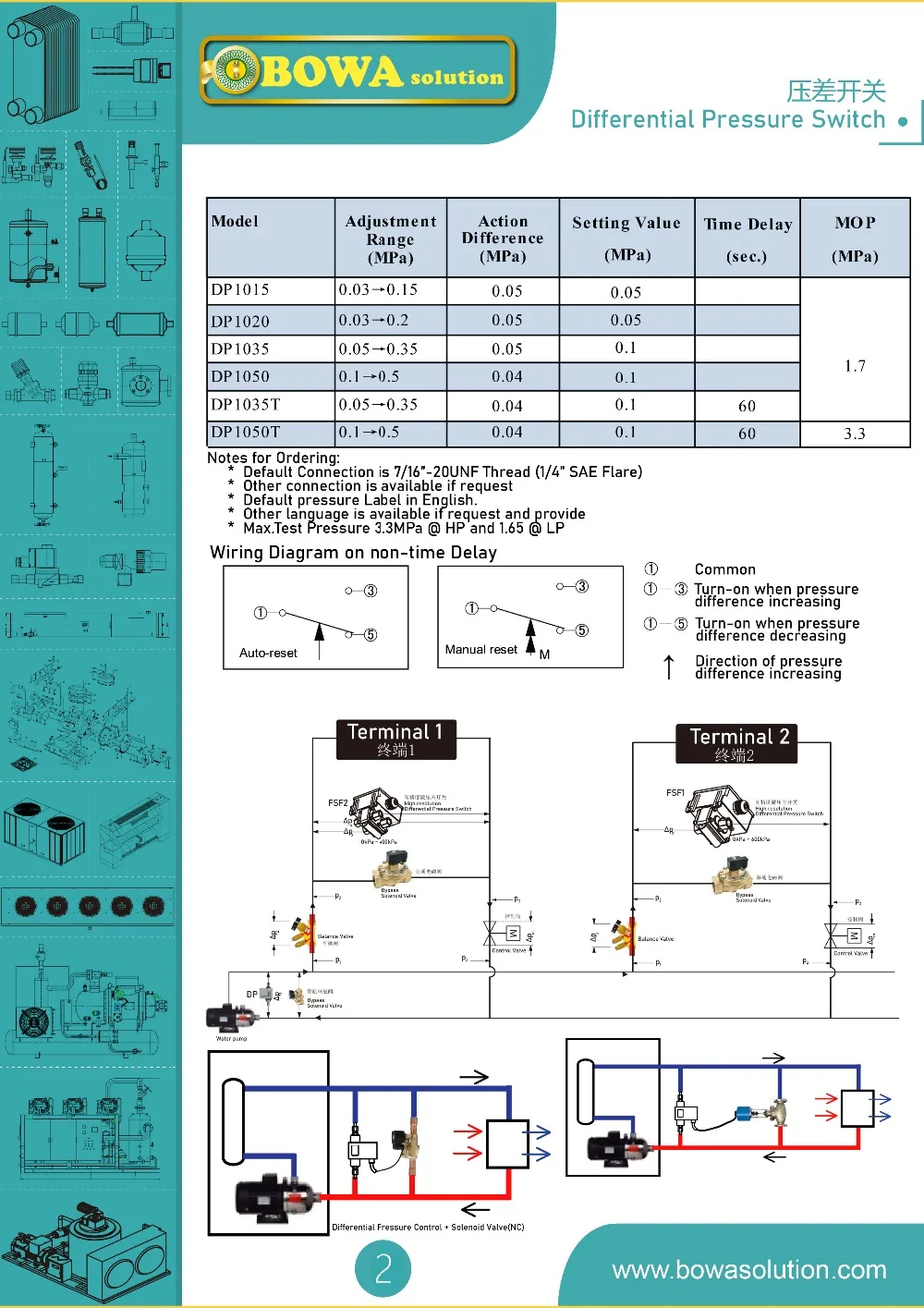 BOWA SOLUTION mechanic дифференциальный переключатель давления предлагает уникальное сочетание компактного размера, отличной производительности, защиты окружающей среды, механики долгой работы и конструкции. Микропереключатель с высоким разрешением и чувствительные диафрагмы объединяются для обеспечения узкого дэдбэнда и высокой стабильности. Удобное, внутреннее и безопасное регулируемое колесо доступно в несколько раз, что обеспечивает легкость настройки точки. Типичное применение переключателя включает в себя мониторинг фильтров и защиту от протекания в сточных водах, биопереработке, пищевых продуктах и напитках, HVAC и газовой промышленности.