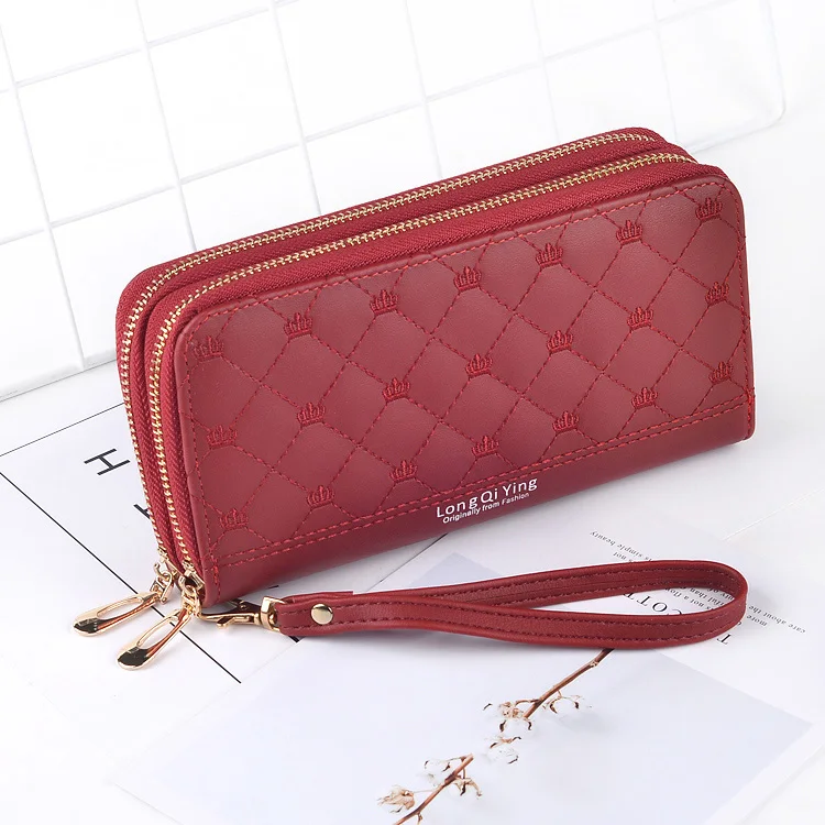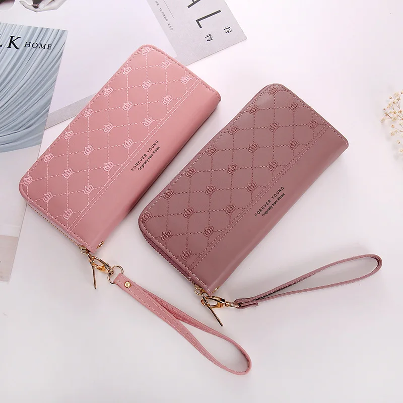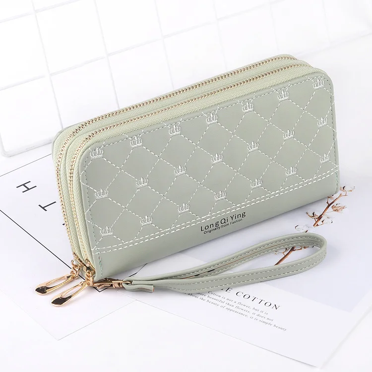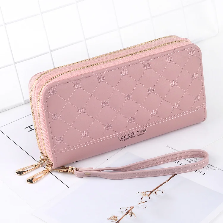 Модный женский кошелек из искусственной кожи с рисунком короны, дамская сумка-кошелек для монет, длинный клатч, женские кошельки с двойной молнией, кошельки