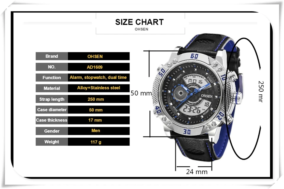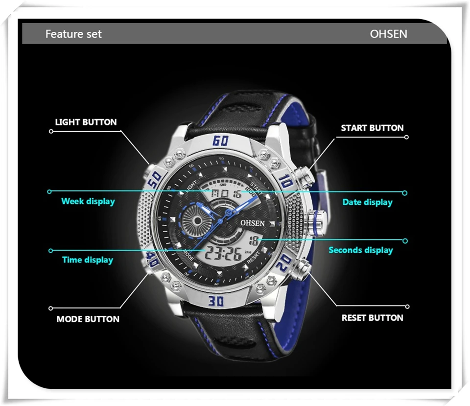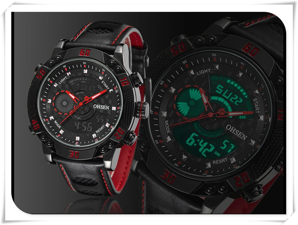 OHSEN reloj hombre модные часы для мужчин топовые брендовые Роскошные двойные спортивные мужские часы Мужские кварцевые цифровые часы relogio masculino