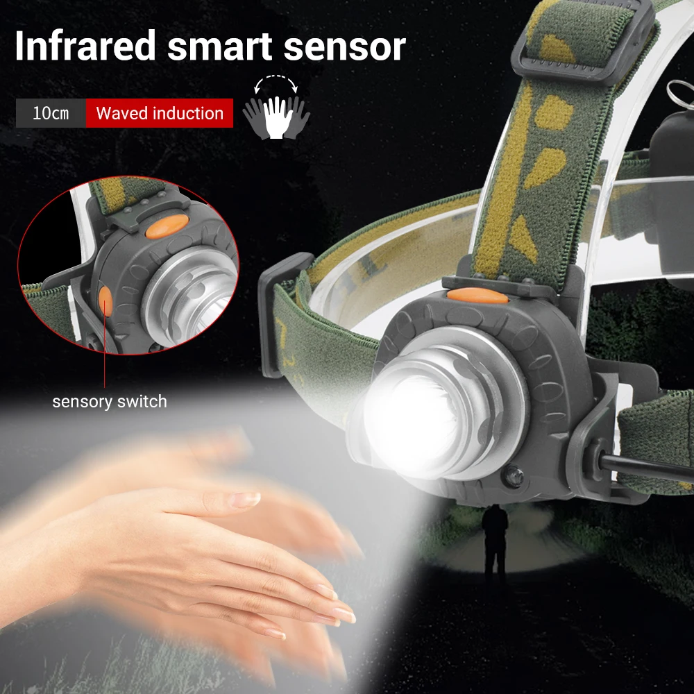 ● 3 световых режима. Яркий свет -- слабый свет -- стробоскоп, доступно больше режимов. ● Водонепроницаемый налобный фонарь: супер яркий водонепроницаемый фонарь с расширенным сроком службы LED-светодиодов до 100000 часов. ● Датчик Ручной волны: Используйте Взвешивание чувств, чтобы полностью освободить руки. Больше не придется снимать перчатки или складывать с рук инструменты, только нужно шикарно помахать. ●●LIGHTWEIGHT с регулируемым размером. Вес составляет всего 0,1 кг, и у него есть легко регулируемый эластичный ремешок, фонарь идеально подходит для тех, кто постоянно нуждается в освещении для разных активностей.