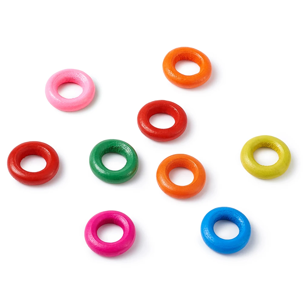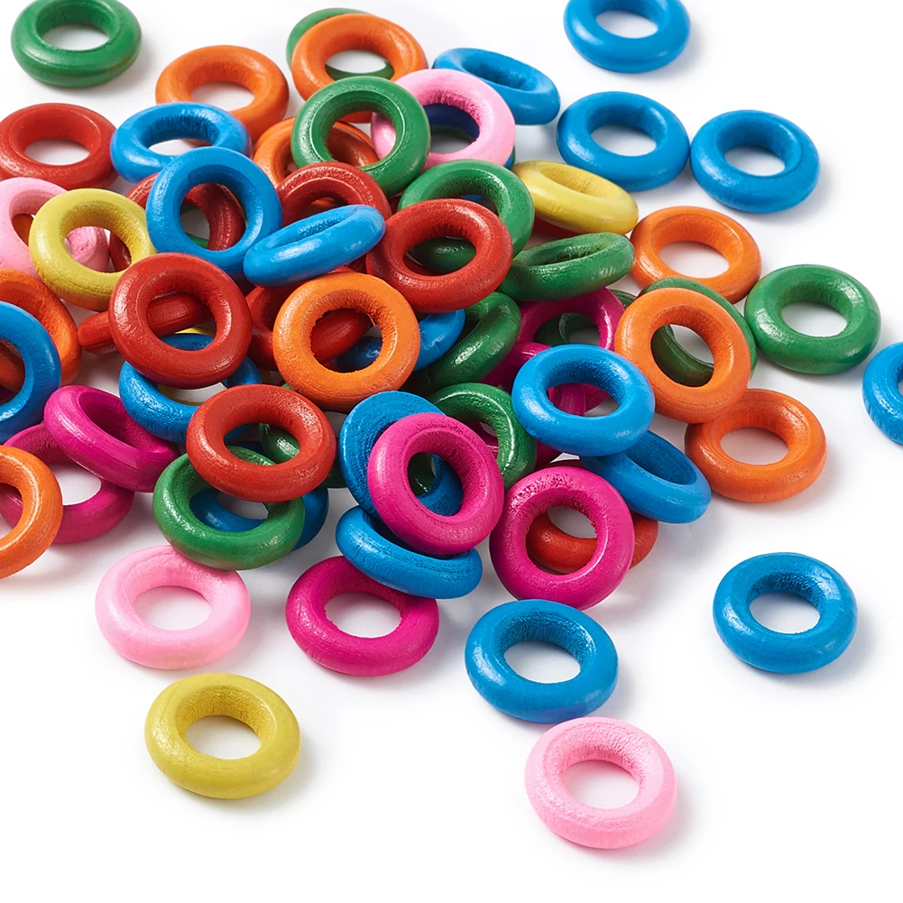 100pcs/lot Mixed Color Round Donut Wood Beads Dyed Lead Free Handmade Jewelry for DIY about 15mm in diameter, hole: 8mm