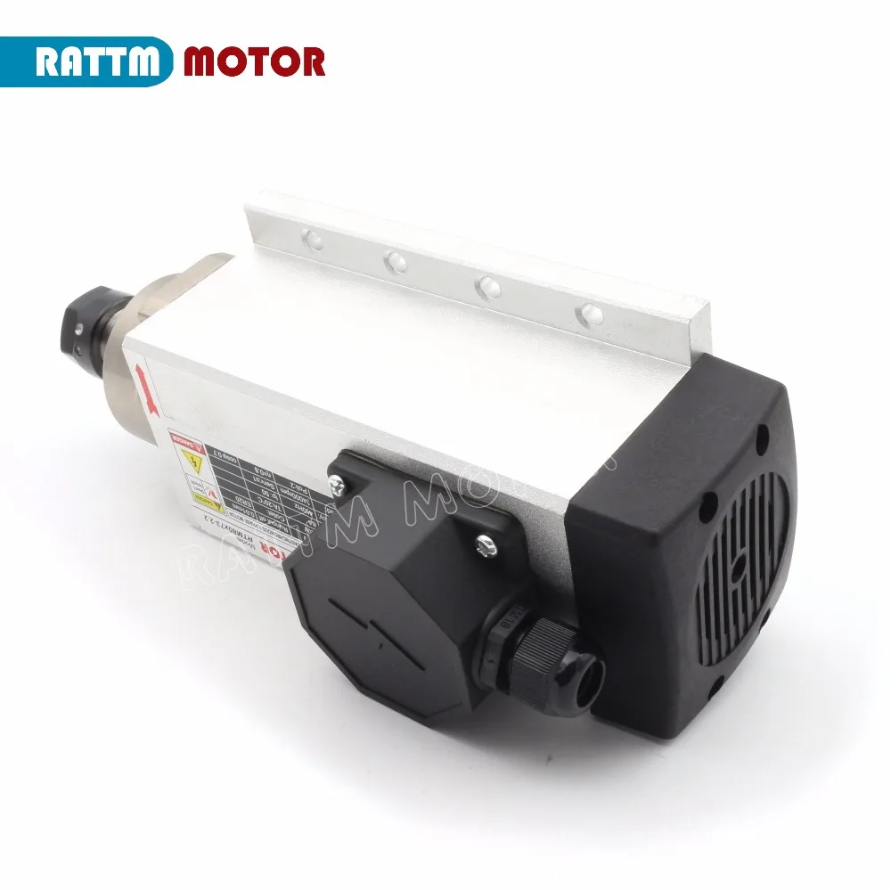 1x2,2 кВт квадратный ER20 двигатель шпинделя с воздушным охлаждением(220V,24000 об/мин, 4 подшипника, 400 Гц)