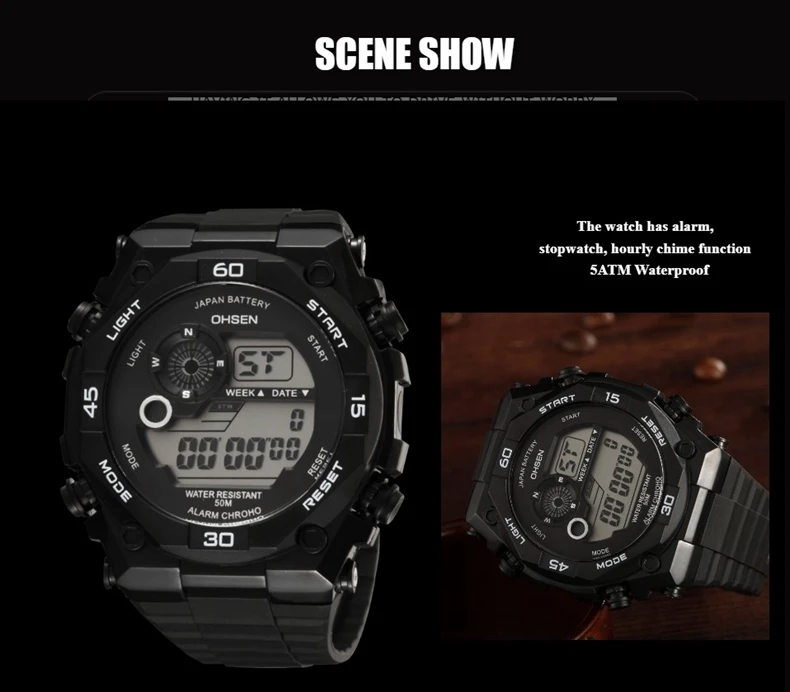 Японская Кнопка Maxell, более длительный срок службы Чехол из нержавеющей стали с логотипом laser OHSEN Резиновый ремешок хорошего качества, более удобный Пряжка из нержавеющей стали