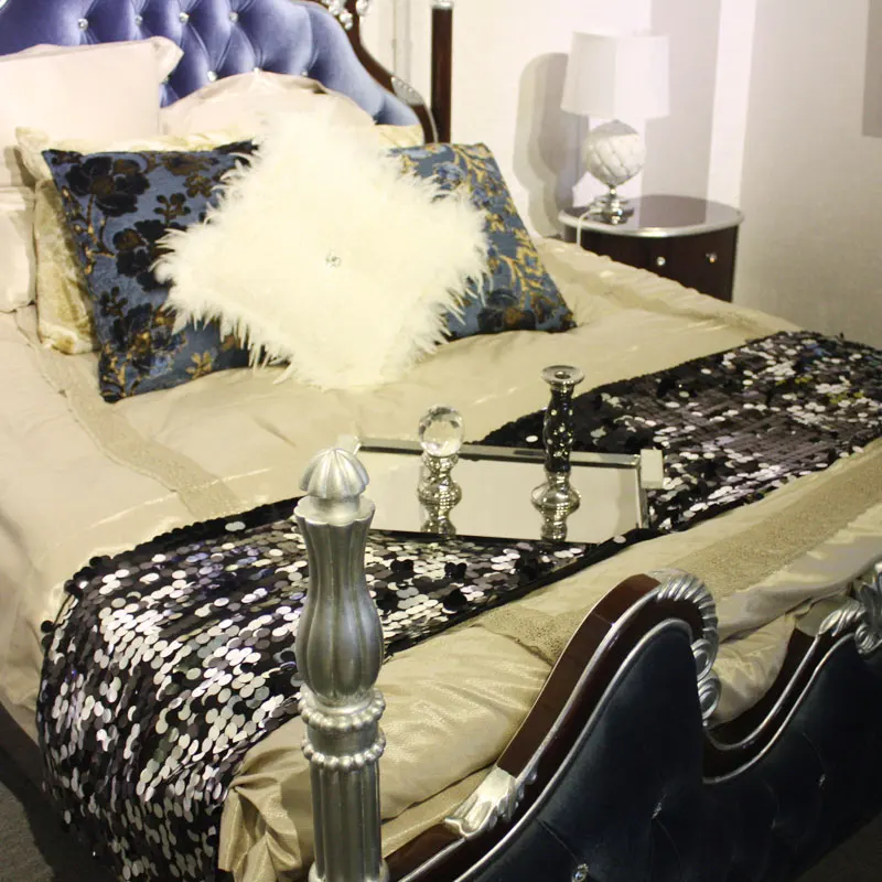 RN312 европейские роскошные кровати ковер выставочный зал стол бегун Большой Черный блестками конец кровати коврик полотенце отель кровать флаг