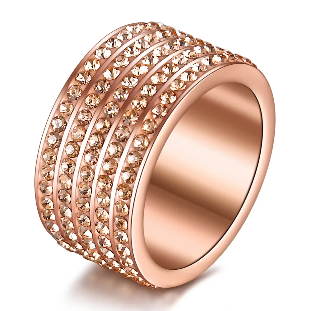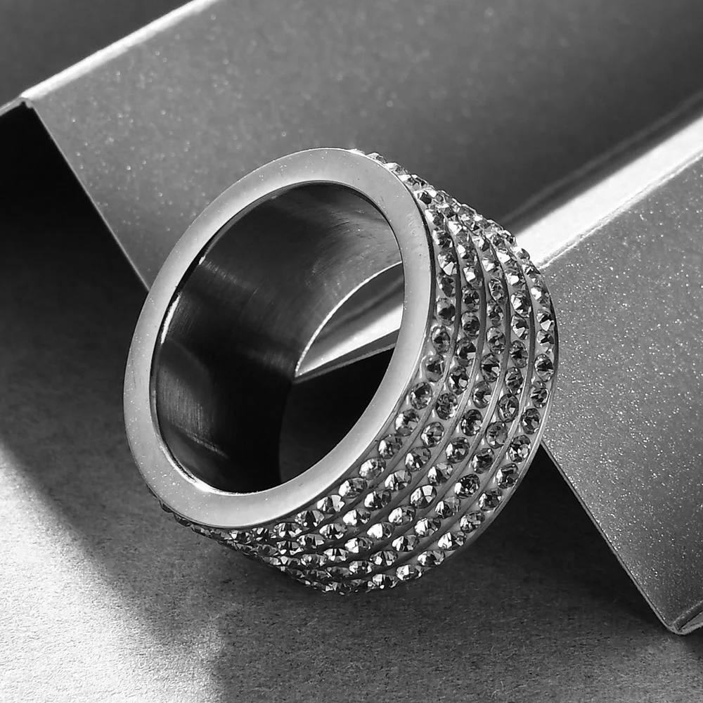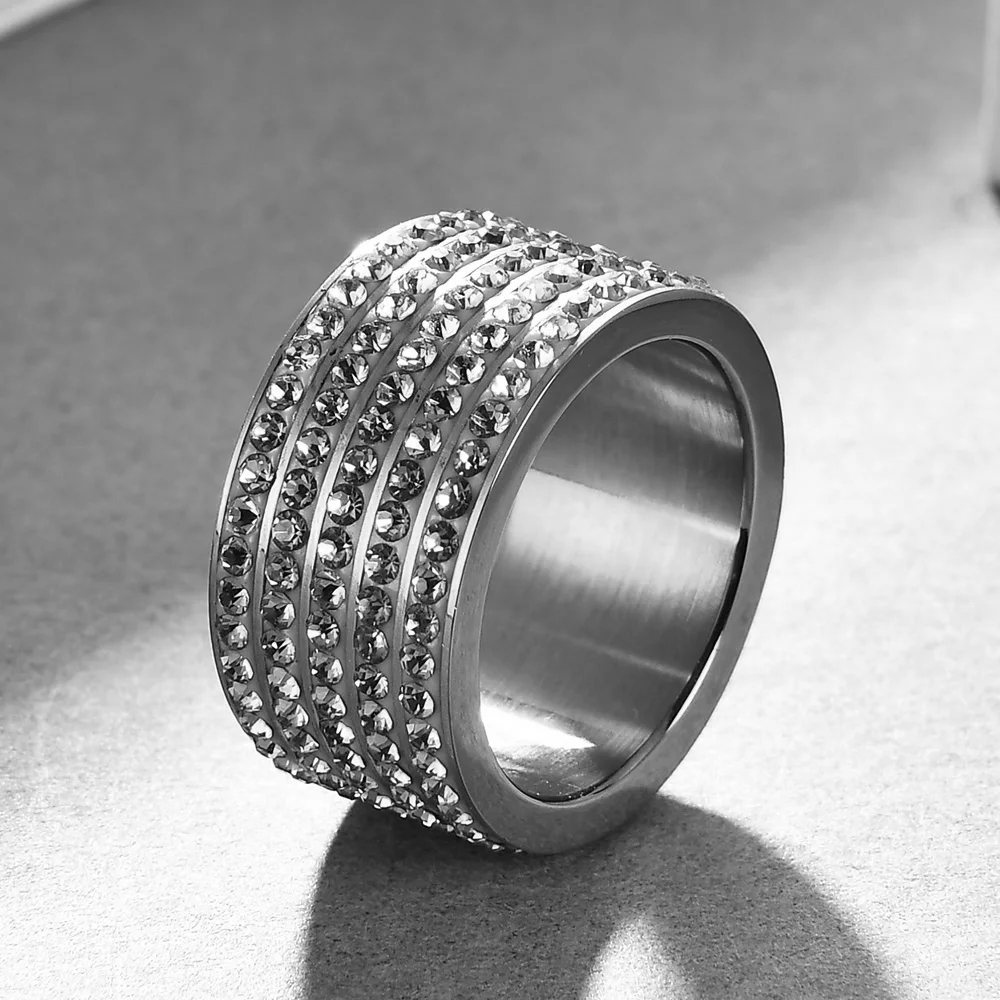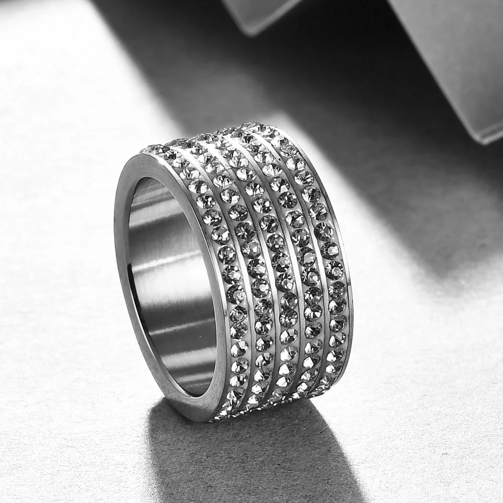 Модные ювелирные изделия из нержавеющей стали, кристалл, свадебные кольца для женщин, 5 линий, стразы, женское Ювелирное кольцо, новинка, оптовая продажа