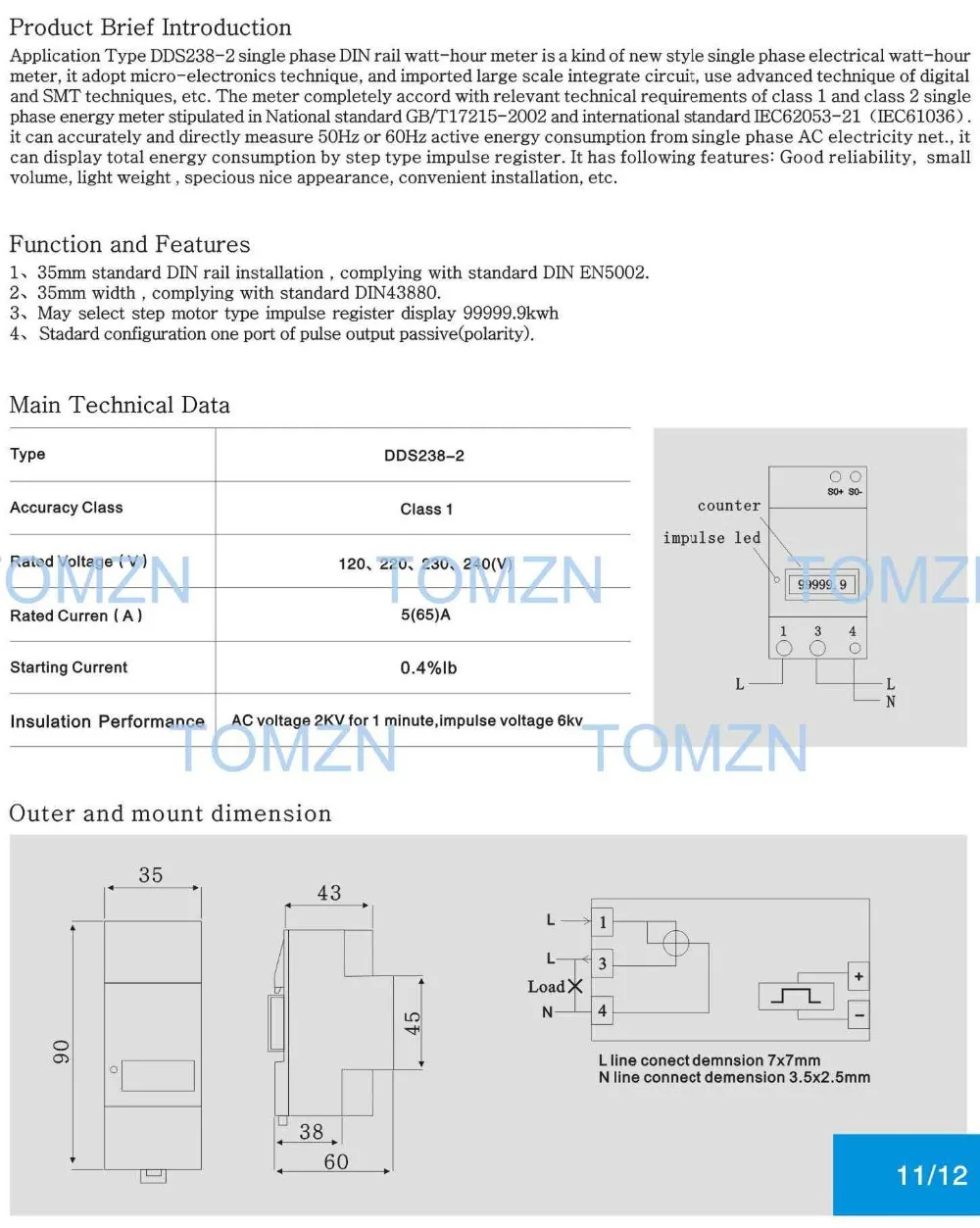 DDS238-2 однофазный счетчик энергии din-рейки, используемый для измерения однофазного двухпроводного энергопотребления сети переменного тока! Деменция-это только 2 модуля, похожих на автоматический выключатель!