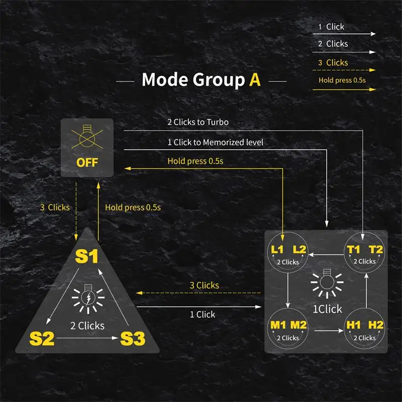 6. Две группы режимов, плюс Изменяемая яркость, больше вариантов использования на выбор.