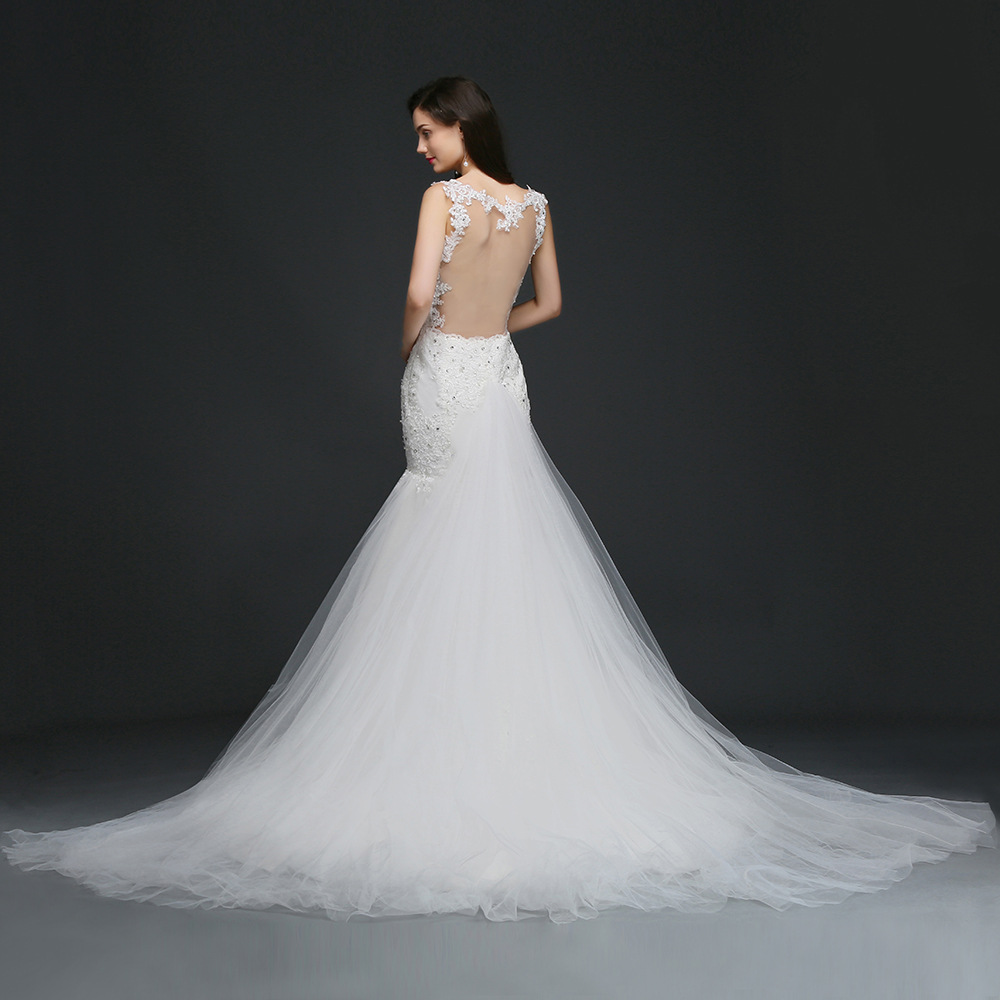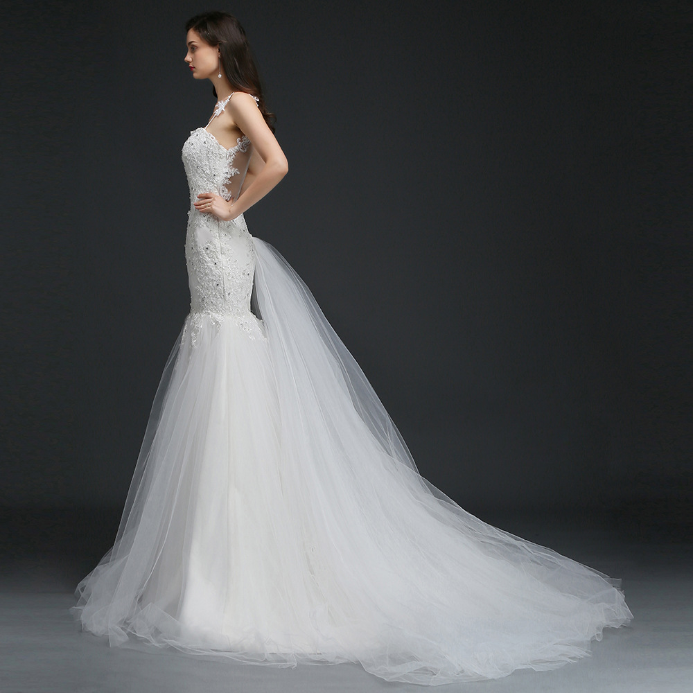 Vestido de noiva sereia Сексуальное Кружевное белое свадебное платье русалки с открытой спиной со съемным шлейфом дешевое свадебное платье