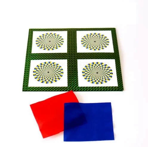 Волшебник показывает декорированную панель. Он открывает его для создания прямоугольной трубки и показывает, что внутри находится шелк, который он удаляет. Затем он разгладит трубку, и когда он откроет ее снова внутри, там будет шелк с другим цветом!