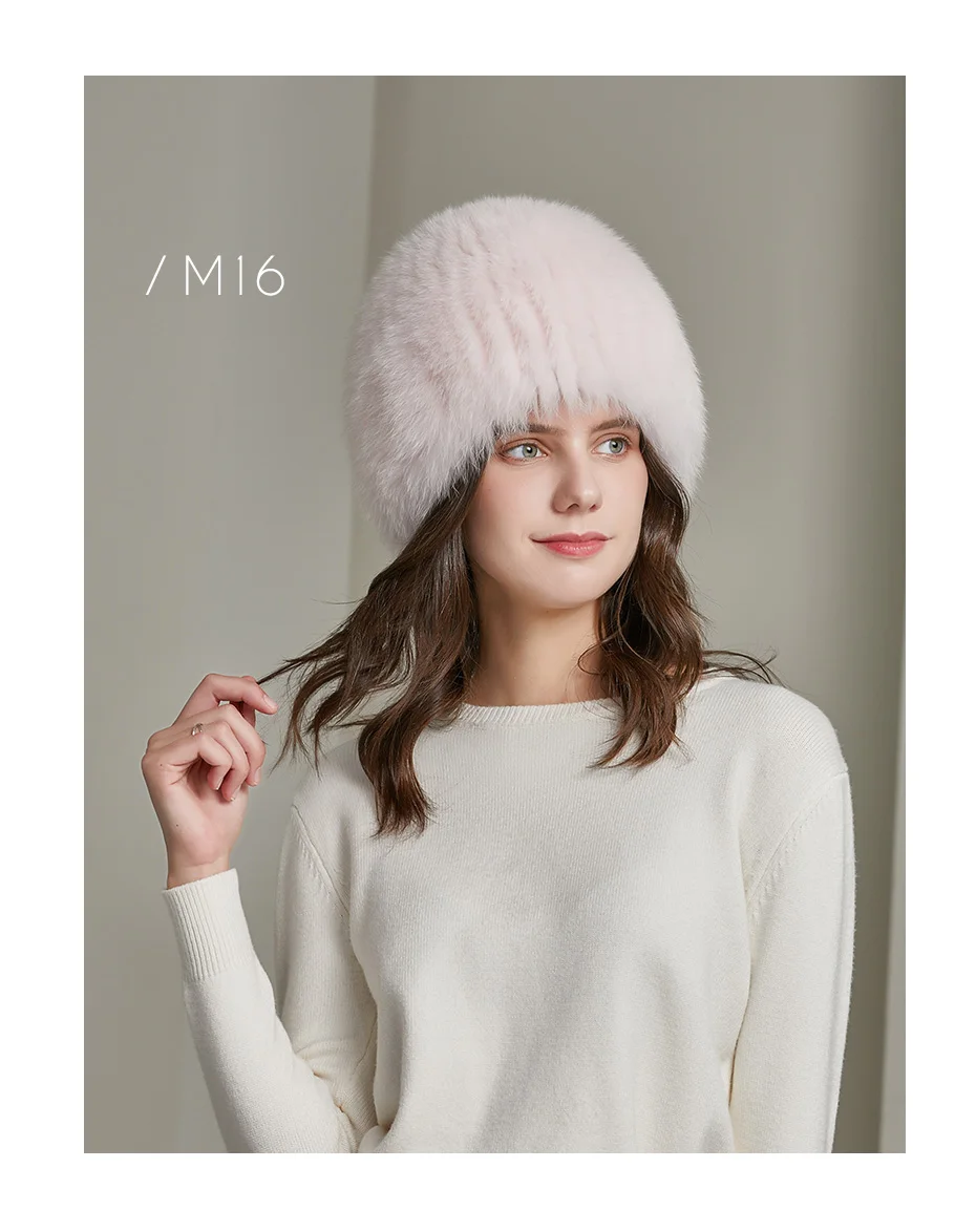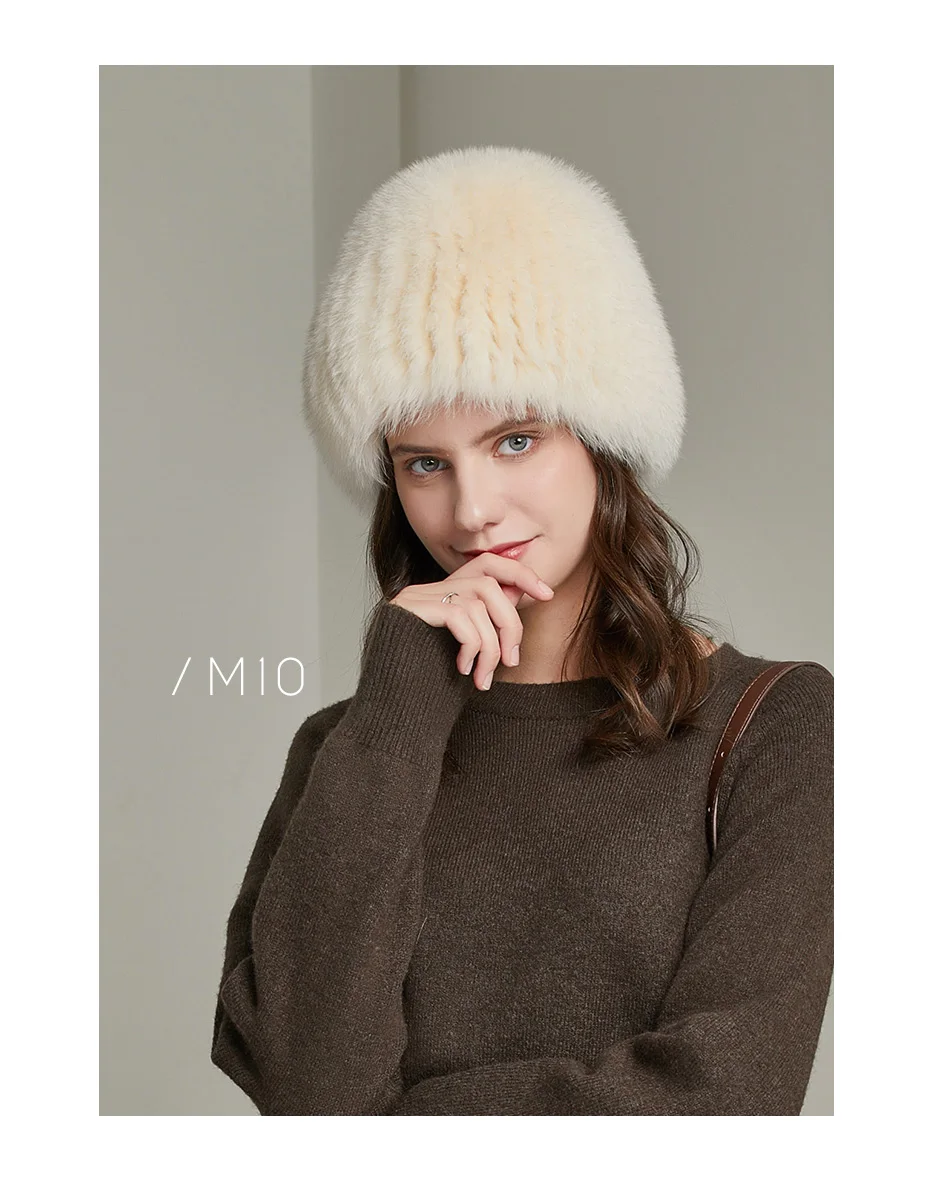 Женская вязаная шапка из меха норки в Корейском стиле теплая Модная утолщенная