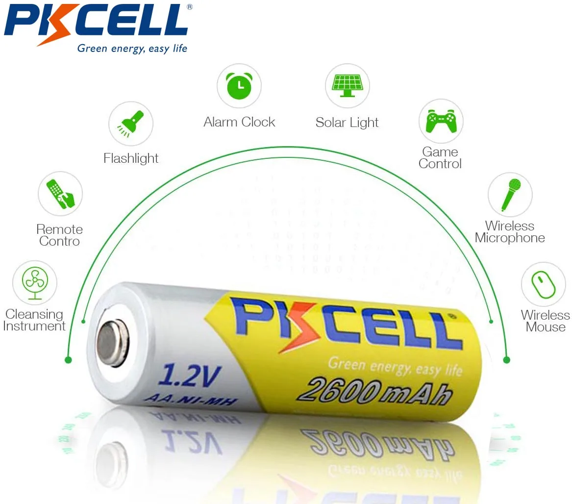 Бренд: PKCELL Модель: ni-mh 1,2 V AA 2600mAh Размер: AA Напряжение: 1,2 V Нормальная емкость: 2600 мАч Размер (макс.): Диаметр: 14,5 мм * Высота: 50,5 мм Стандартный ток заряда: 260 мА время: 15 ч Ток быстрой зарядки: 780 МА время: 4 ч Применение:Цифровая камера, портативное видео, игра, фонарик, пульт дистанционного управления, игрушка, MP3/MP4 плеер, электрическая бритва и т.д.