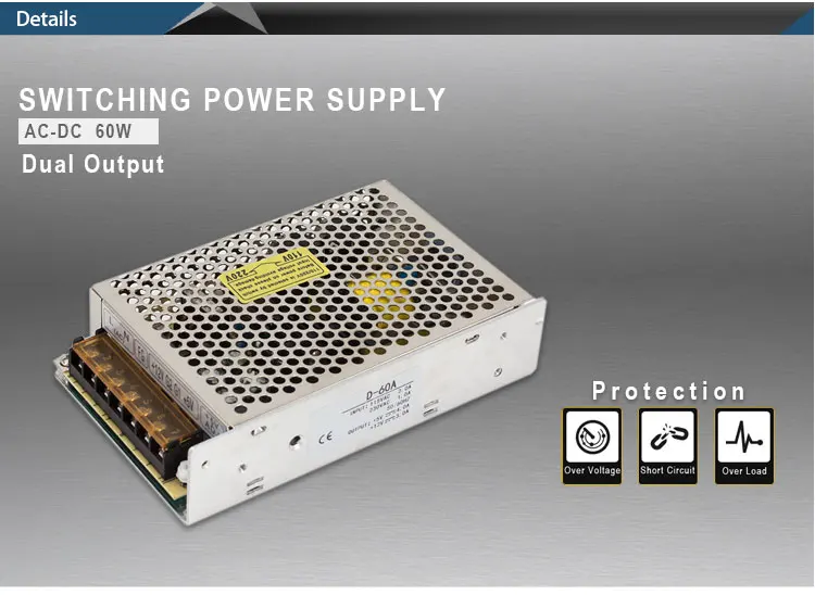 | Вход | Диапазон напряжения | 85 ~ 132VAC/170 ~ 264VAC выбран переключателем | |||